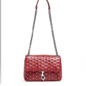 Rebecca Minkoff Heart Studded Red Quilted Leather Adjustable Crossbody Bag