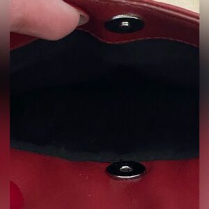 Cardinal red quilted leather Crossbody bag with front clasp closure and studded accents.