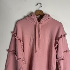 Rebecca Minkoff Hoodie Womens Large Pink Ruffle Sleeve Pullover