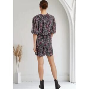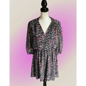 Rebecca Minkoff Isabella Ditsy 1/2 Sleeve Black Pink Floral Mini Dress M 6 8