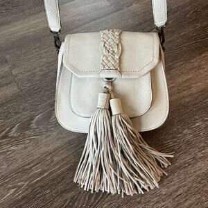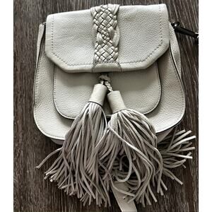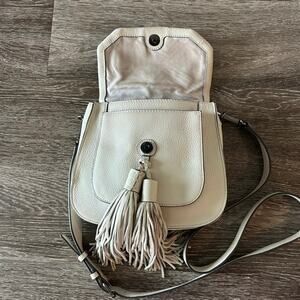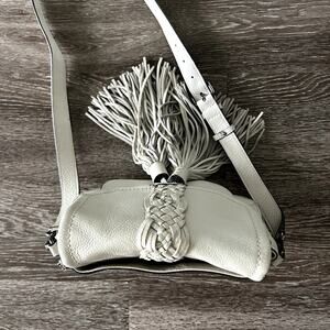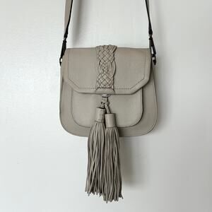 Rebecca Minkoff Isobel Tassel Saddle Bag Gray Leather Crossbody Shoulder VGUC