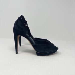 Rebecca Minkoff Ivy Black Suede Peep Toe Heels