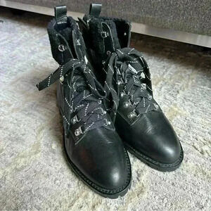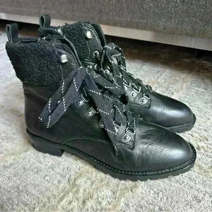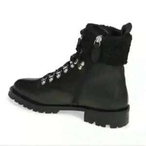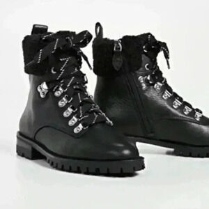 Rebecca Minkoff Jaylin Fox Fur-Trimmed Chunky Leather Combat Boot Size 8.5