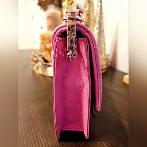 NWT. REBECCA MINKOFF Pink Diamond quilting and a chain-trimmed strap give a refined look to a pebbled-leather bag in a convenient size to carry all your essentials.