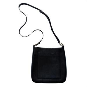 Black Pebbled Leather with magnetic closure. Light Gold hardware. 1 exterior slip pocket.