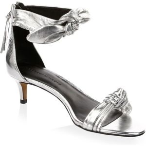 Small heel, big on style! Dance the night away in these elegant Rebecca Minkoff silver leather kitten heeled sandals.