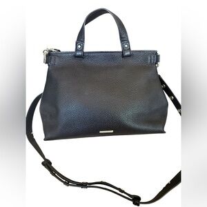 Rebecca Minkoff Keith black pebbled leather suede medium size satchel purse