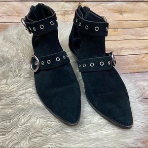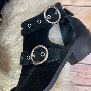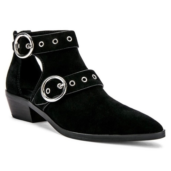 Rebecca Minkoff | ‘Kianna’ Black Leather Suede Cutout Western Ankle Booties