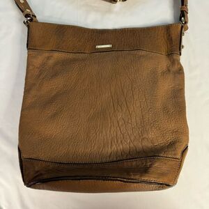 Rebecca Minkoff Large Brown Pebbled Leather Bucket Tote Purse Boho Minimalist