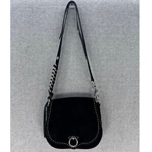 Rebecca Minkoff Large Jean Saddle Bag Black Suede BOHO Western Silver Accents