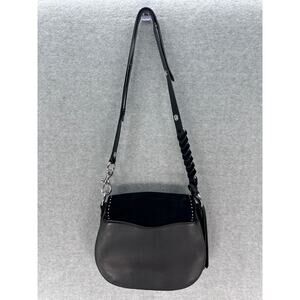 Rebecca Minkoff Large Jean Saddle Bag Black Suede BOHO Western Silver Accents