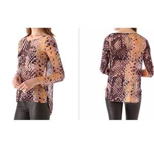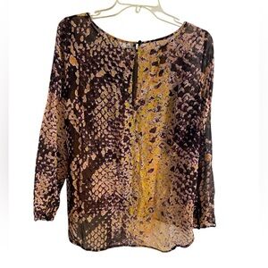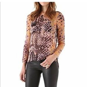Rebecca Minkoff Leah pop over blouse top snake print sheer silk Small