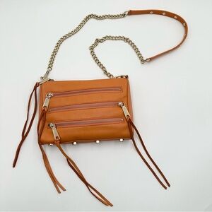 Rebecca Minkoff Leather Multi Zipper Small Crossbody Bag Orange Leather