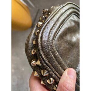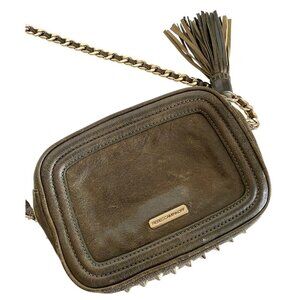 Rebecca Minkoff Leather Studded Crossbody Olive Green Gold Chain Tassel Grunge
