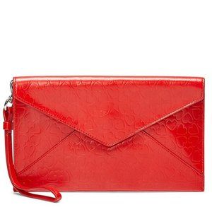 A removable wrist strap on this classic silhouette is key for those late nights when holding it under your arm just won’t do.