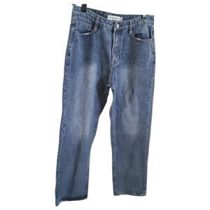Rebecca Minkoff Women's Blue Denim Crystal Studded Straight Jeans NWOT
