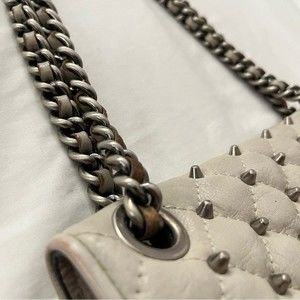 Rebecca Minkoff Light Gray Studded Quilted Leather Crossbody Shoulder Bag