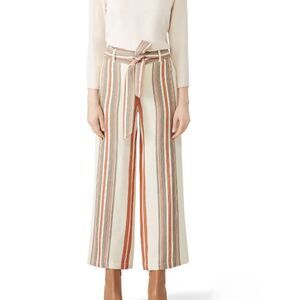 Rebecca Minkoff Linen Blend Molly Striped Wide Leg Pants Cream Brown Rust Size 4