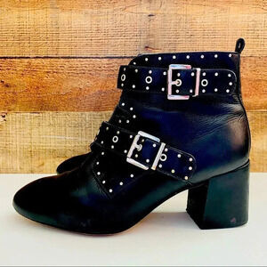 Rebecca Minkoff Logan Studded Buckle Booties Black Lamba