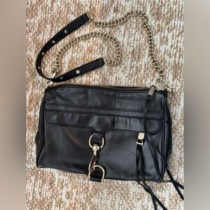 Rebecca Minkoff M.A.C. Crossbody Handbag Black Leather with Gold Tone Hardware