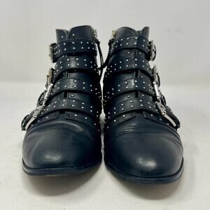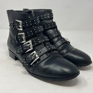 Rebecca Minkoff Maddox Leather Buckle Studded Booties Size 9.5 Black