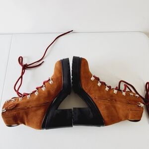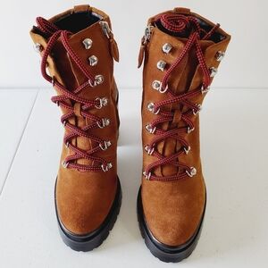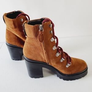 Rebecca Minkoff Maihlo Suede Lug Sole Boots Size 7.5 Heeled Combat Bootie.