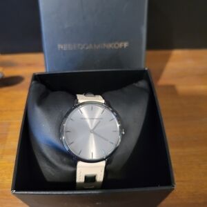 Very gently used only once it twice. In excellent condition. Comes with original box. Lightweight and comfortable to wear. Blush Leather straps with dark studs. Comes with original box. Needs a new battery.