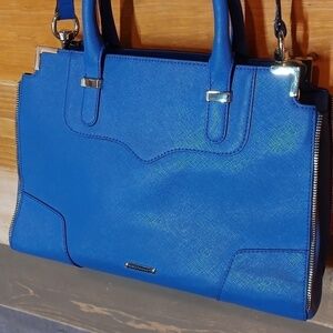 Rebecca Minkoff medium satchel in a brilliant blue. This bag has handles and also a strap so you can wear it as a crossbody. There are three separate internal compartments. This bag is in great condition. It does have some scratching on the hardware, but the material is in great condition. 12.5 x 10 x 5