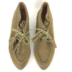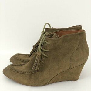 Rebecca Minkoff Women's Size 8 Mia Lace Up Tassels Almond Toe Wedge Booties