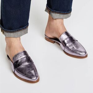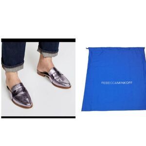 Rebecca Minkoff Mika Metallic Leather Mules Loafer Slides 8.5 w Dust Bag