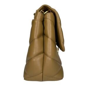 Crafted from chevron-quilted leather in the color, Military, and accented with gold hardware, this beauty boasts a pull-through chain shoulder strap for multiple styling options and a back slip pocket for easy access to your phone. Versatile and easy to wear.