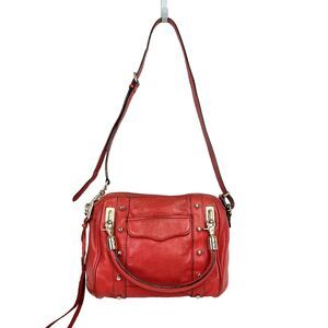 Rebecca Minkoff Mini Cupid Satchel Crossbody Bag Orange Leather Studded Pockets