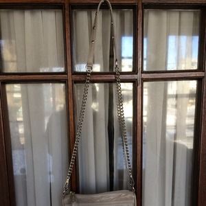 This is a genuine Rebecca Minkoff Mini MAC clutch in soft grey.  I purchased this gorgeous purse with good intentions, but realized I am more of a big purse. Used a handful of times.  I love how the light grey color shows off a true leather texture.