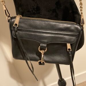 Gently used black leather Rebecca Minkoff crossbody bag w/detachable gold strap