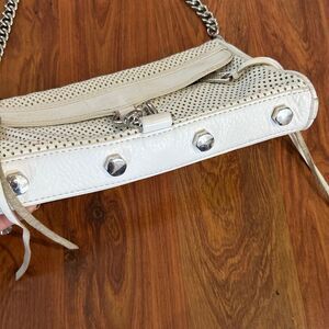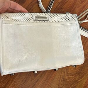 Rebecca Minkoff Mini MAC convertible white leather handbag with silver chain and studs