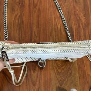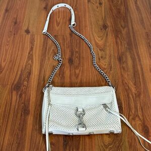 Rebecca Minkoff Mini MAC convertible white leather handbag with silver chain and