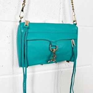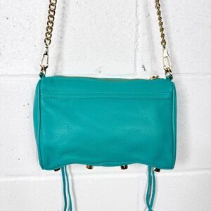 Rebecca Minkoff Mini Mac Crossbody Bag Turquoise Leather Gold Chain Hardware