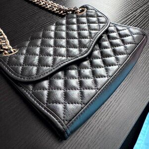 Used Rebecca Minkoff Mini Quilted Affair Convertible Crossbody Purse for sale. As pictured, the back has a few indentations, but is still in great condition.