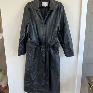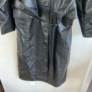 Rebecca Minkoff Mod Trench Coat Long Belted Faux Leather Jacket Size L Lined