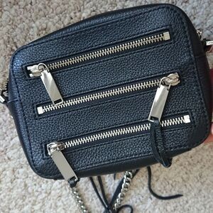 Rebecca Minkoff Moto Leather Camera Bag in black with 4 zip