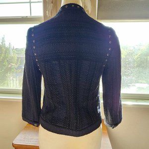 Rebecca Minkoff Navy Blue and Black Studded Tweed Jacket - Size 2