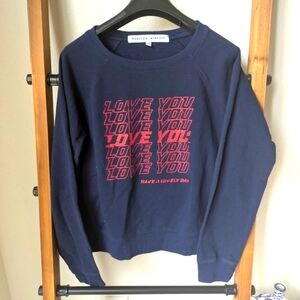 Navy sweatshirt featuring a bold red 'Love You' graphic. Perfect for casual wear.