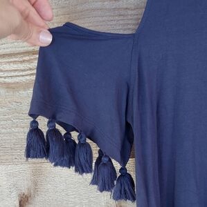 Explore the tee's more playful side in this cold-shoulder style revved up with fun craft-inspired tassels that swing and sway with every more you make.