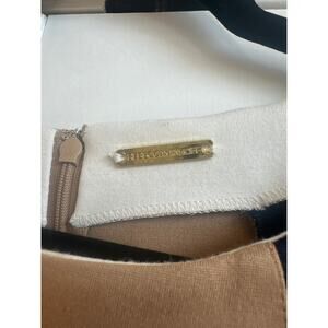 Rebecca Minkoff Navy, White, and Tan Block Style Preppy Peplum Zip Up Blouse