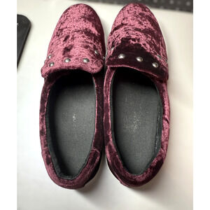 Rebecca Minkoff Noelle Stud Wine Color Velvet Slip On White Platform Size 9.5.