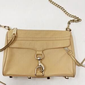 Rebecca Minkoff Nude Cream Mini Mac Crossbody Bag Chainlink Leather Zip Closure