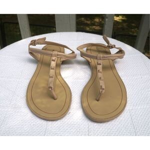 - Cute beige nude studded ankle strap thong sandals by Rebecca Minkoff