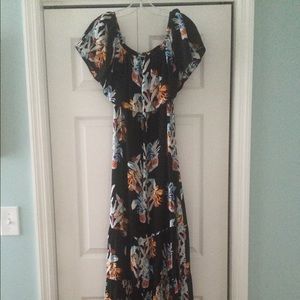 On trend silk off the shoulder dress in tropical print. *My closet is currently closed, but feel free to ask me any questions about any of the items.