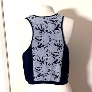 Rebecca Minkoff Okina Knit Crop Blue/White Sleeveless Blouse Size Large