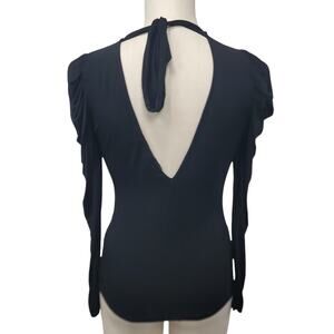 Rebecca Minkoff Open Tie Back Puff Long Sleeve Fitted Top Black Womens XS